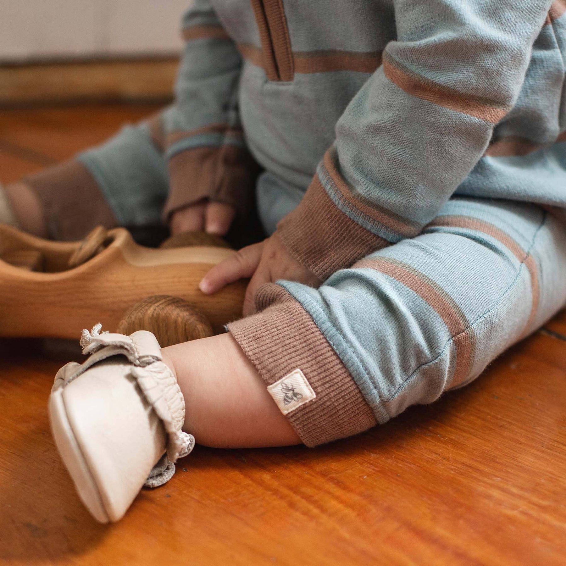 Style and comfort come together in one with our striped jumpsuit! * Long sleeve jumpsuit * 100% organic cotton * Super soft jersey cotton * Quarter zip with a collar at neckline * Cuffs on sleeves and pant legs * Snaps at diaper line for easy changes and zipper guard at neck * Made in India * Style # LY32106-MNB