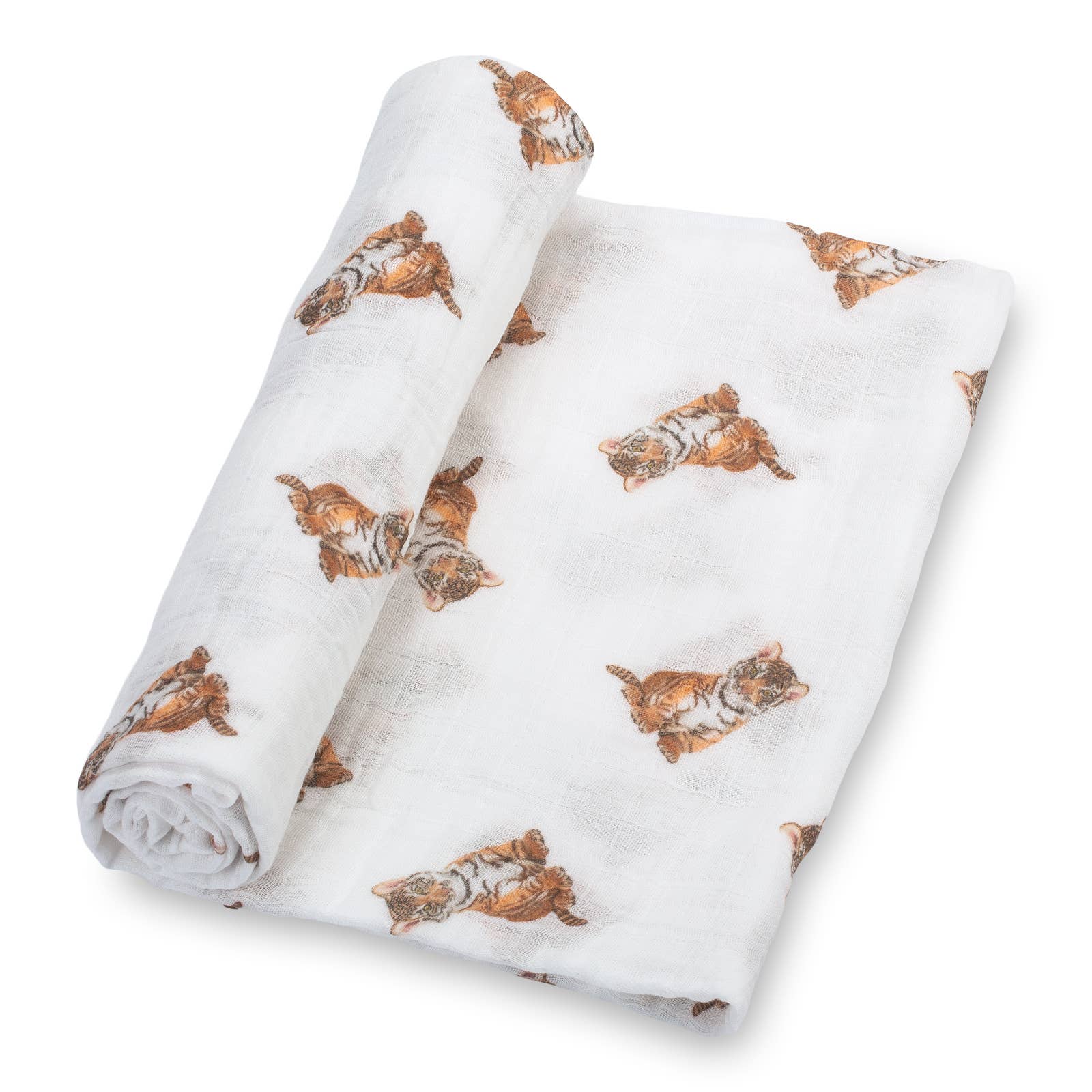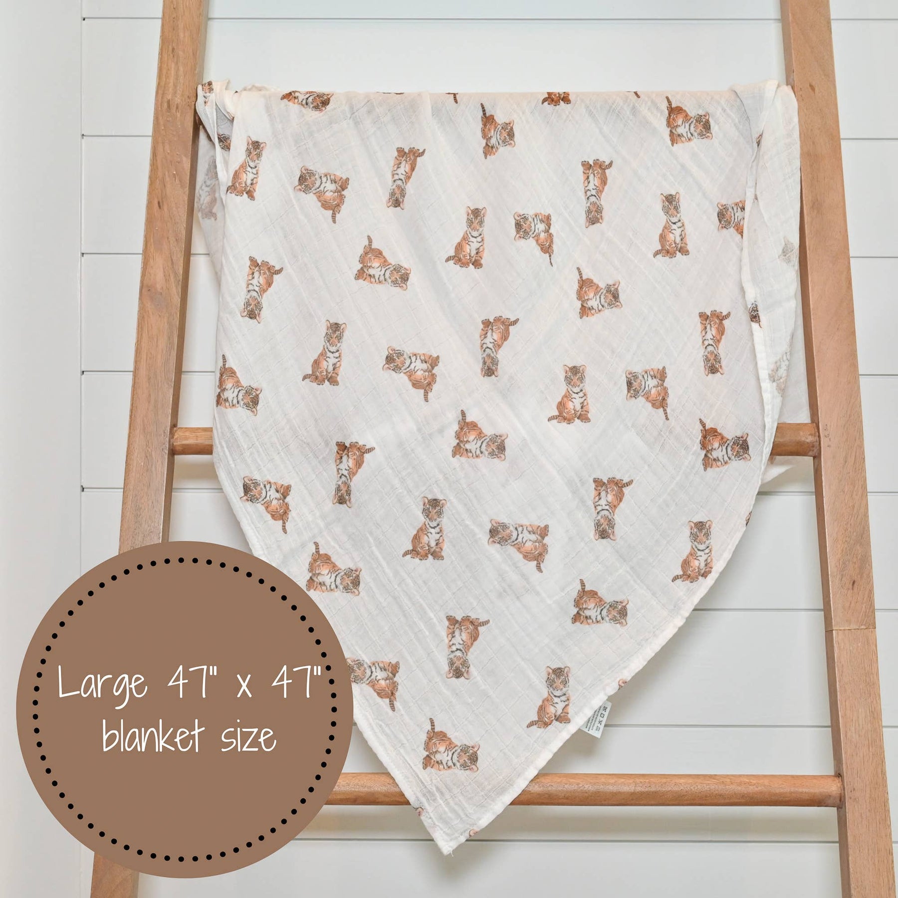 -Wrap your little cubs in our cozy 100% cotton muslin blanket to keep them snuggly and secure. At 47x47 inches, it's perfect for newborns and toddlers alike. And for all those tiger lovers, this print is sure to be a hit in the nursery or on strolls with your baby. Plus, it's made from breathable fabric that will last for years to come - a perfect baby shower gift or keepsake.