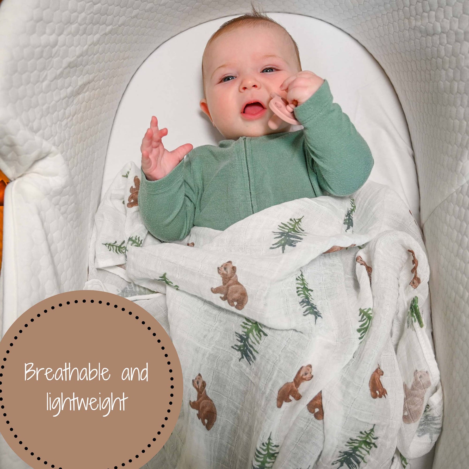 Wrap your little ones in our super-comfy swaddle blanket made from 100% cotton muslin. At 47x47 inches, it's perfect for newborns through the toddler stage. For all the bear enthusiasts out there, this bear print is a must-have for the nursery or on the go. A great baby shower gift for moms and dads alike! Made from top-quality muslin, this breathable and lightweight blanket is sure to stand the test of time. A keepsake for years to come!