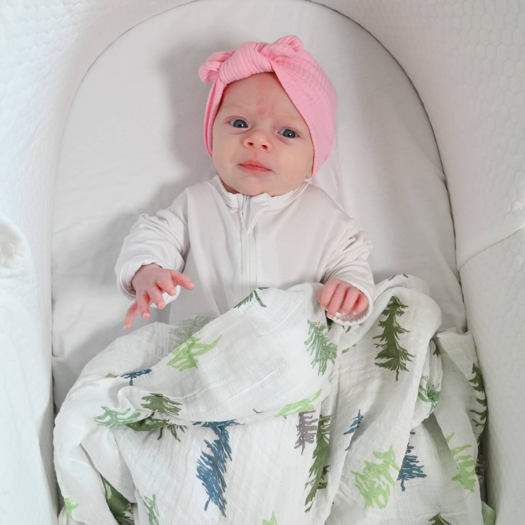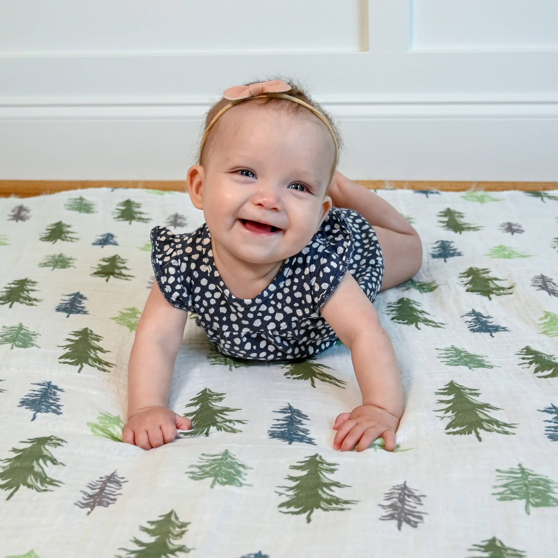 Give your little darlings a snug hug with our ultra-soft 100% cotton muslin swaddles, making them feel safe and sound. At 47x47, each blanket has room to securely wrap your newborn and provide comfort as they grow into toddlers. * NATURE-THEMED SWADDLE DESIGN - This pine tree pattern is perfect for the nursery or as a stroller cover. Moms and dads will dig these as a baby shower gift or welcome treat. * BREATHABLE AND WEIGHTLESS - Our swaddle is crafted from high-quality 100% cotton muslin fabric, giving you peace of mind that your baby is wrapped in a breathable yet sturdy blanket that will last for years and serve as a cherished keepsake. * OEKO-TEX CERTIFIED - Our swaddle blankets meet the standards of Standard 100 by OEKO-TEX.