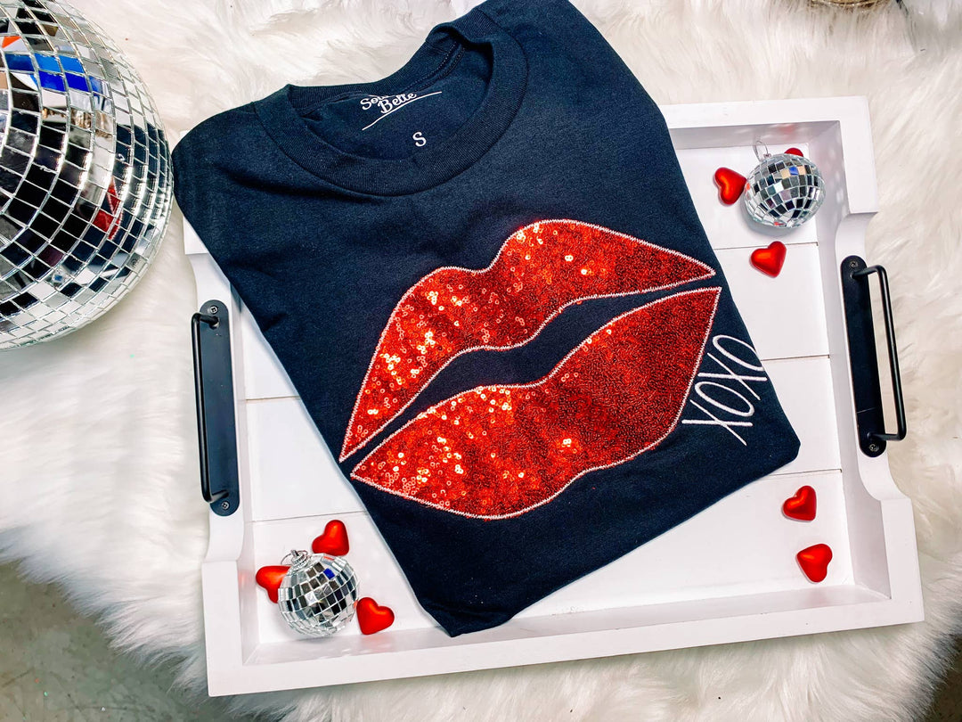 Valentine's Lips ▪️Real Sequins ▪️Embroidered Short Sleeve T-Shirt