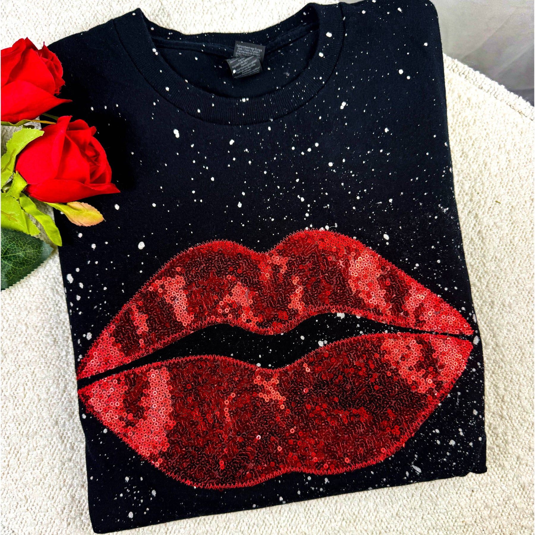 Valentine's Lips ▪️Real Sequins ▪️Embroidered Short Sleeve T-Shirt