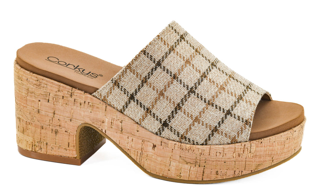 Corkys Miss Carley – Caramel Combo Plaid Platform Sandal