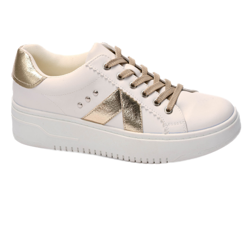 Corkys Tailgate Womens Sneakers in Gold Crinkle Metallic