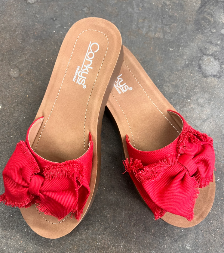 Corkys "Spray Tan" Red Canvas Bow Sandals