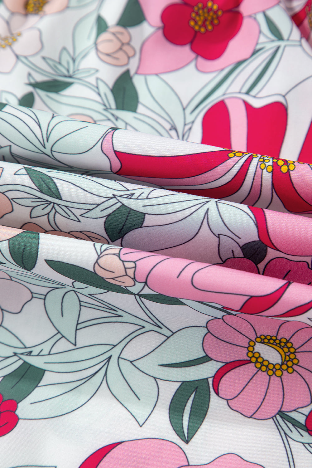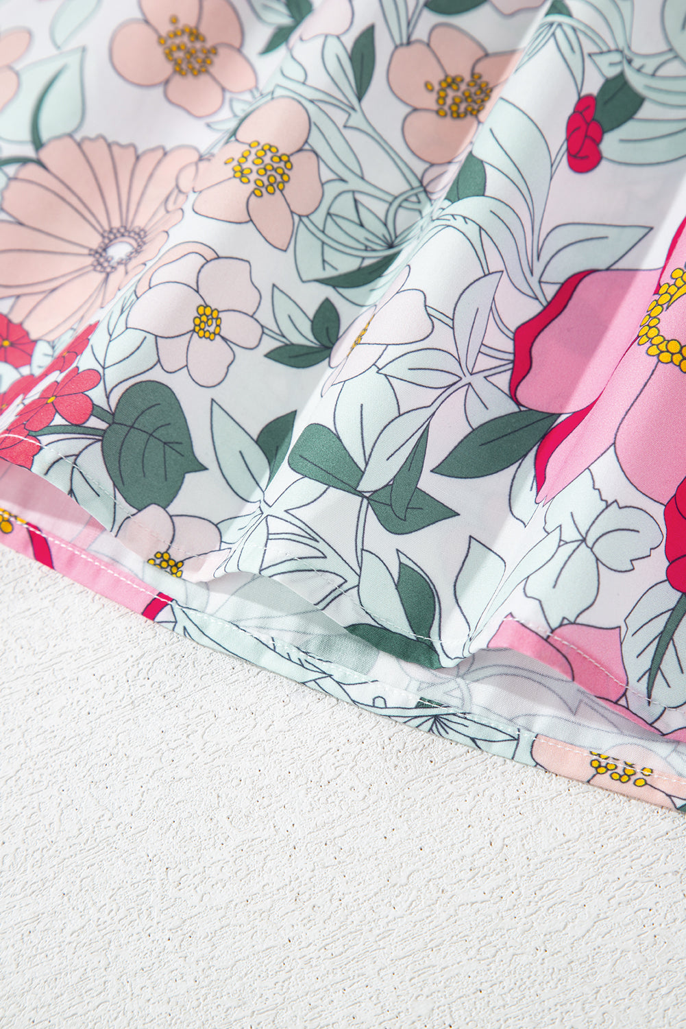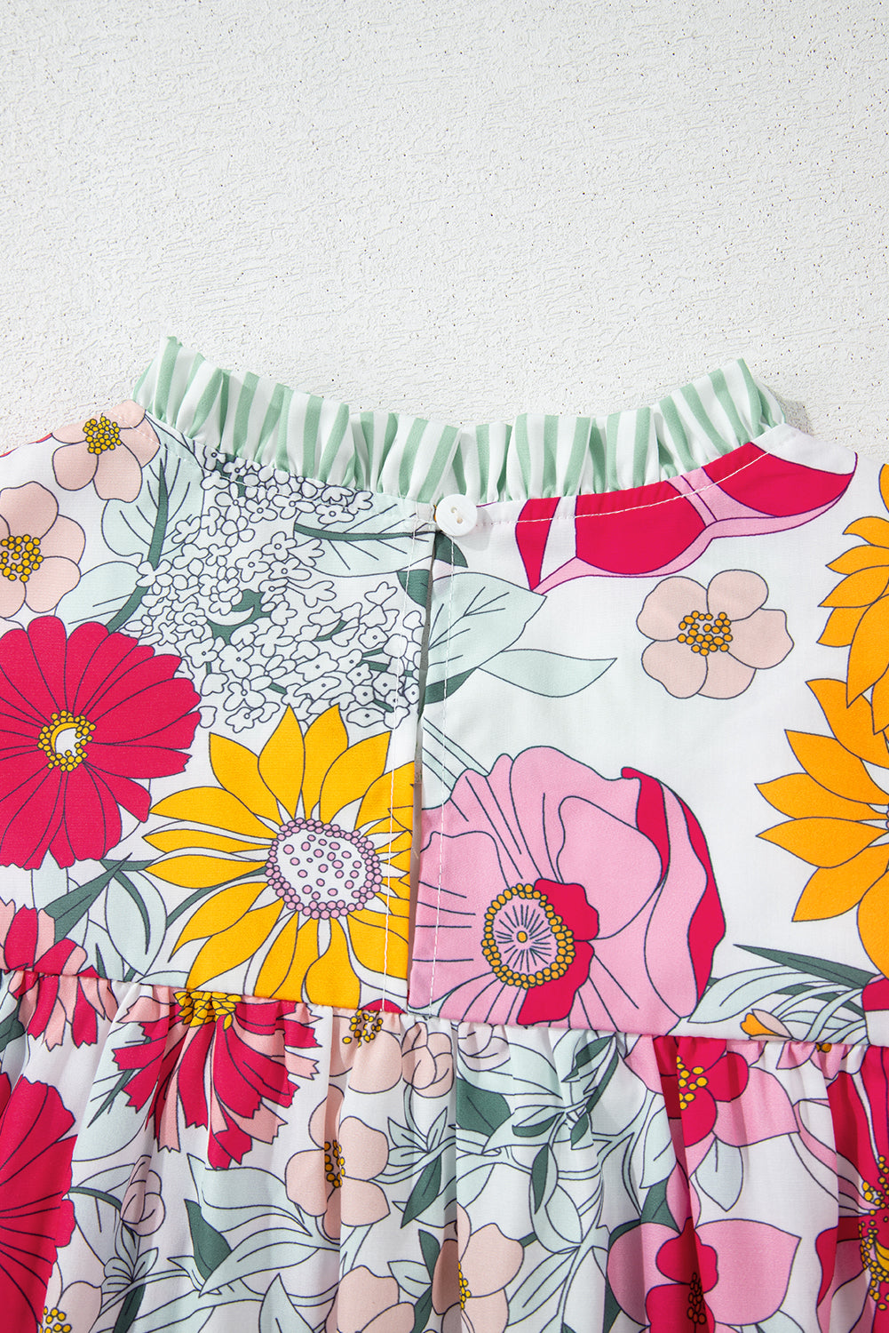 • Unique Print Contrast: The vibrant floral print in shades of pinks, greens, and peach beautifully contrasts with the bold green stripes, creating a visually striking and trendy look.