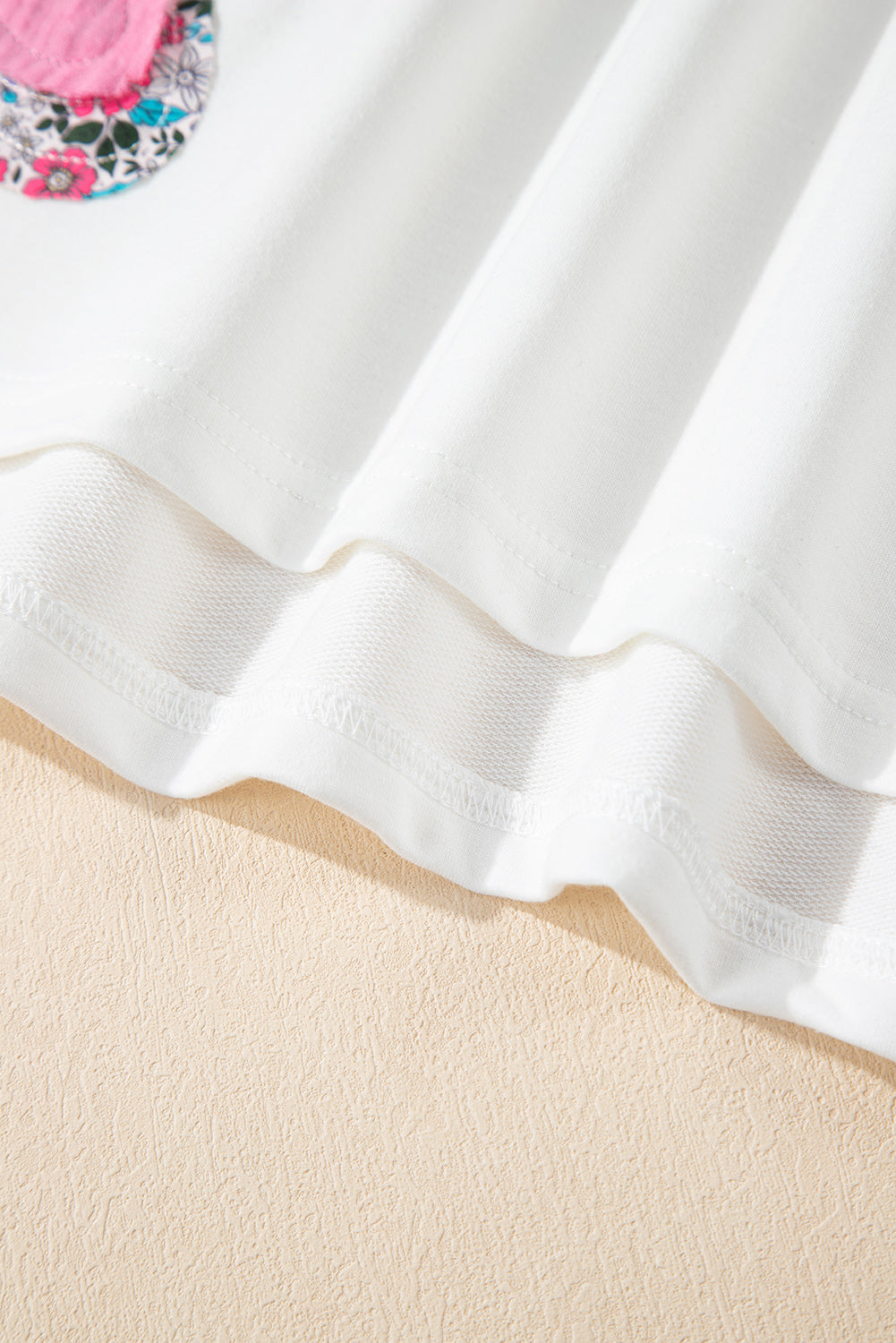 Turn every errand into a compliment-magnet. This soft, white notch-neck tee blooms with oversized 3D pink floral appliqués and ditsy-print trims—playful, flattering, and impossible to miss.
