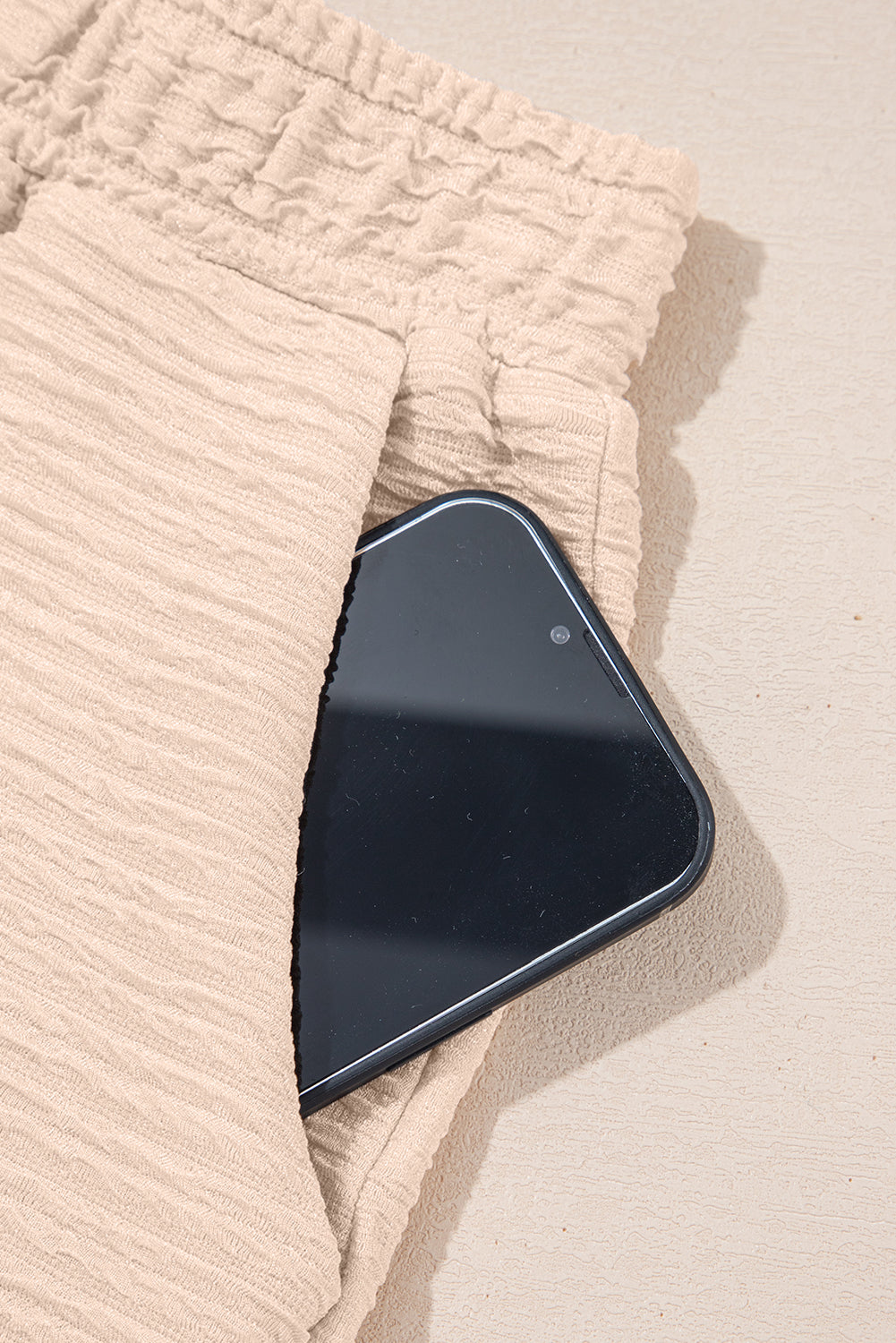 Ready to elevate your laid-back days with effortless boutique style? Our Softly Stated Lounge Set in Oatmilk Bliss is the ultimate blend of chic and cozy. This textured two-piece set features a relaxed-fit V-neck top and elastic high-waisted shorts with pockets—perfect for everything from weekend errands to spontaneous getaways.