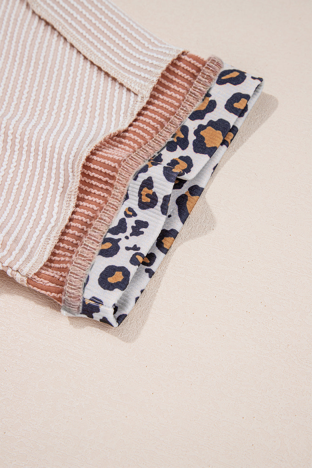 Wild Whisper Rib Tee — Beige Textured with Leopard Trim
